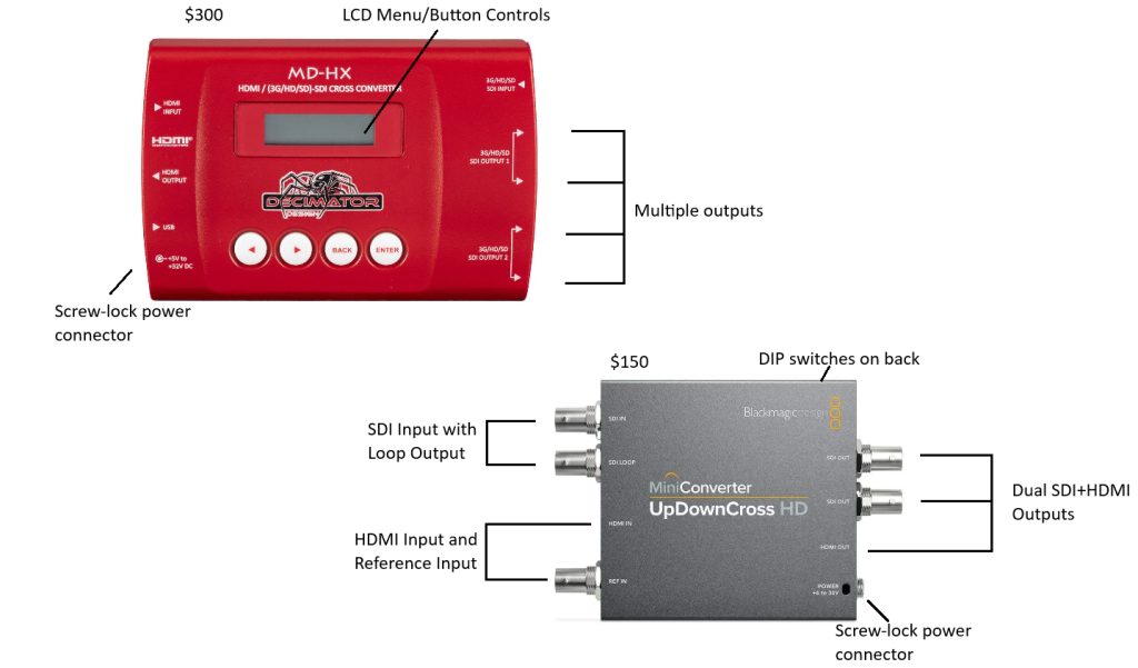 | Blackmagic Up/Down Cross | ~$150 | DIP switches, less intuitive | Lower cost, reliable performance |