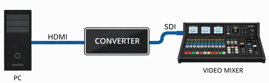 For houses of worship using EasyWorship with professional video mixers, converting HDMI outputs to SDI is essential. SDI eliminates distance issues, adds reliability, and ensures compatibility with mixers like the Blackmagic ATEM.