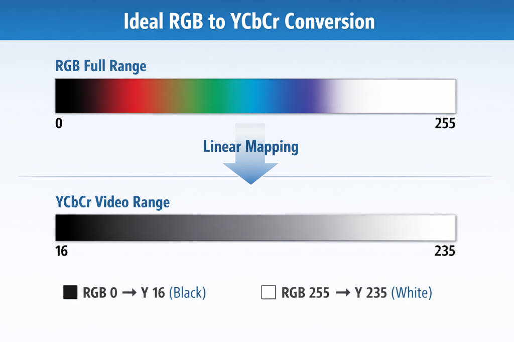 - Converters: Remap 0–255 into 16–235, but this scaling isn’t always perfect. Whites (255) may land below 235.